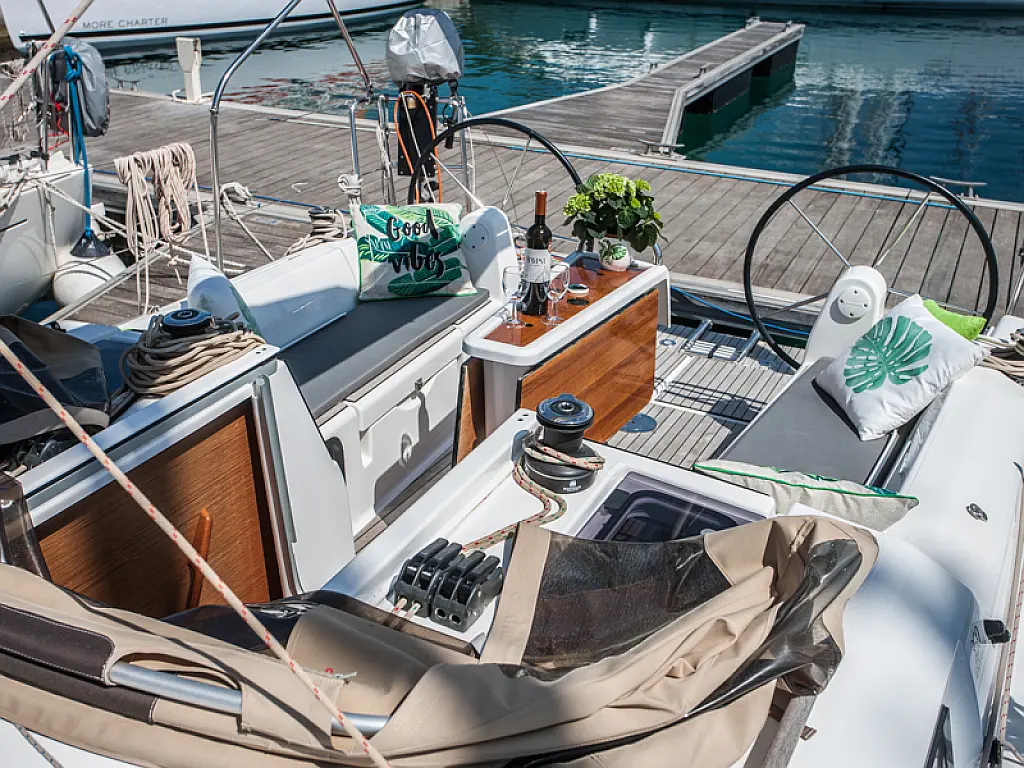 Teak Cockpit, Sprayhood, Bimini, Cockpit cushions, Outboard engine, Cockpit speakers, Heating