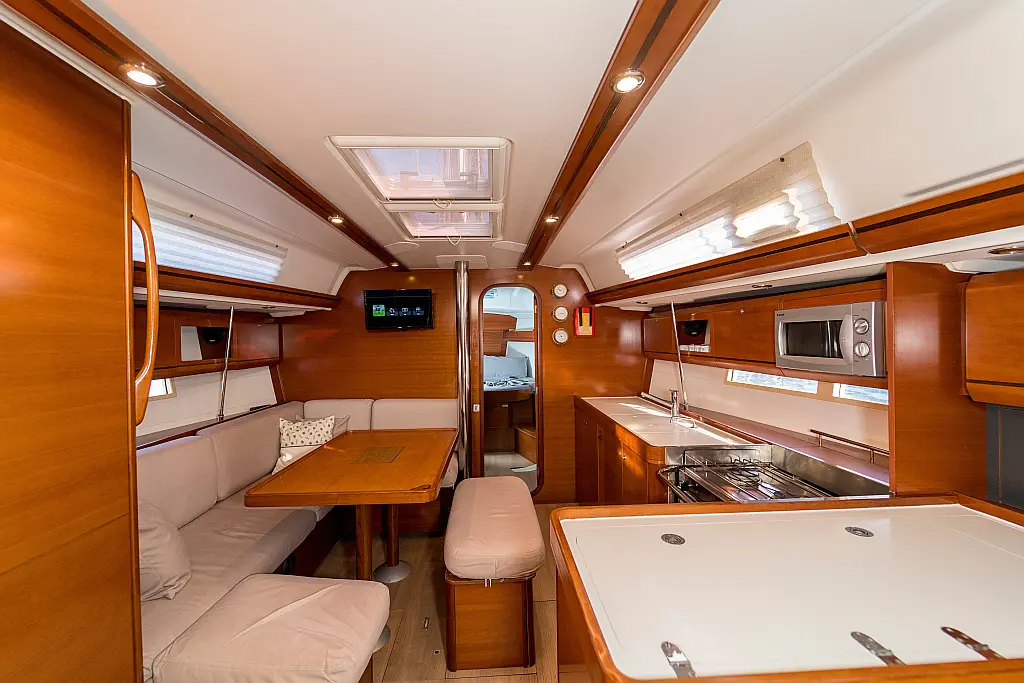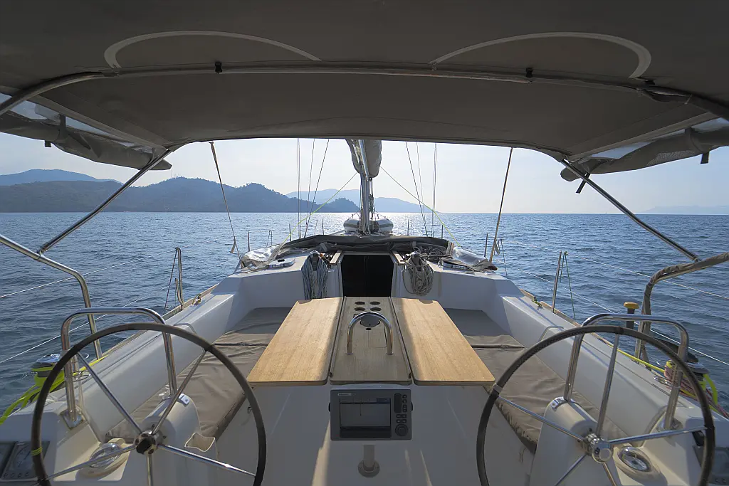 Bimini, Cockpit cushions, Dinghy, Sprayhood, Swimming platform, Outboard engine, Holding tank, Inverter, Solar Panels, Heating, Cockpit speakers, Refrigerator