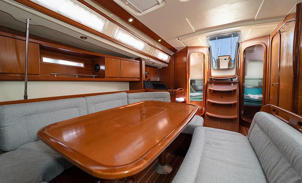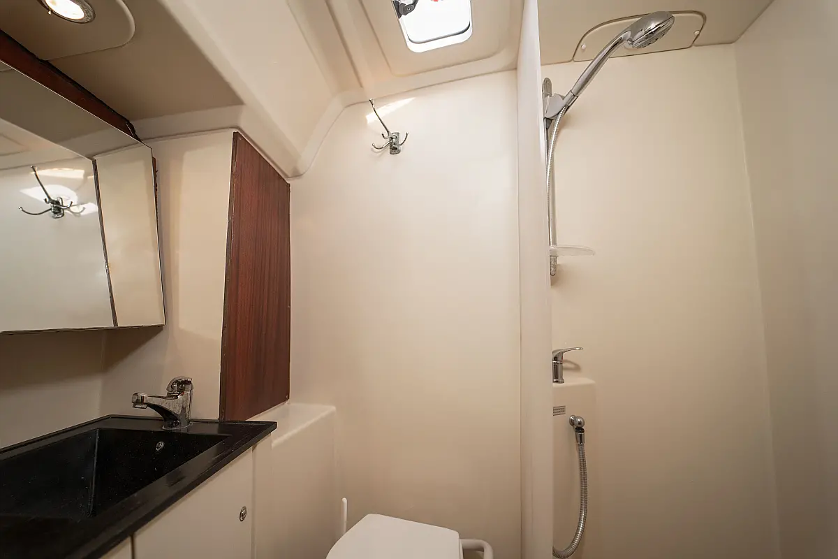 Bimini, Cockpit cushions, Dinghy, Sprayhood, Swimming platform, Outboard engine, Holding tank, Inverter, Solar Panels, Heating, Cockpit speakers, Refrigerator