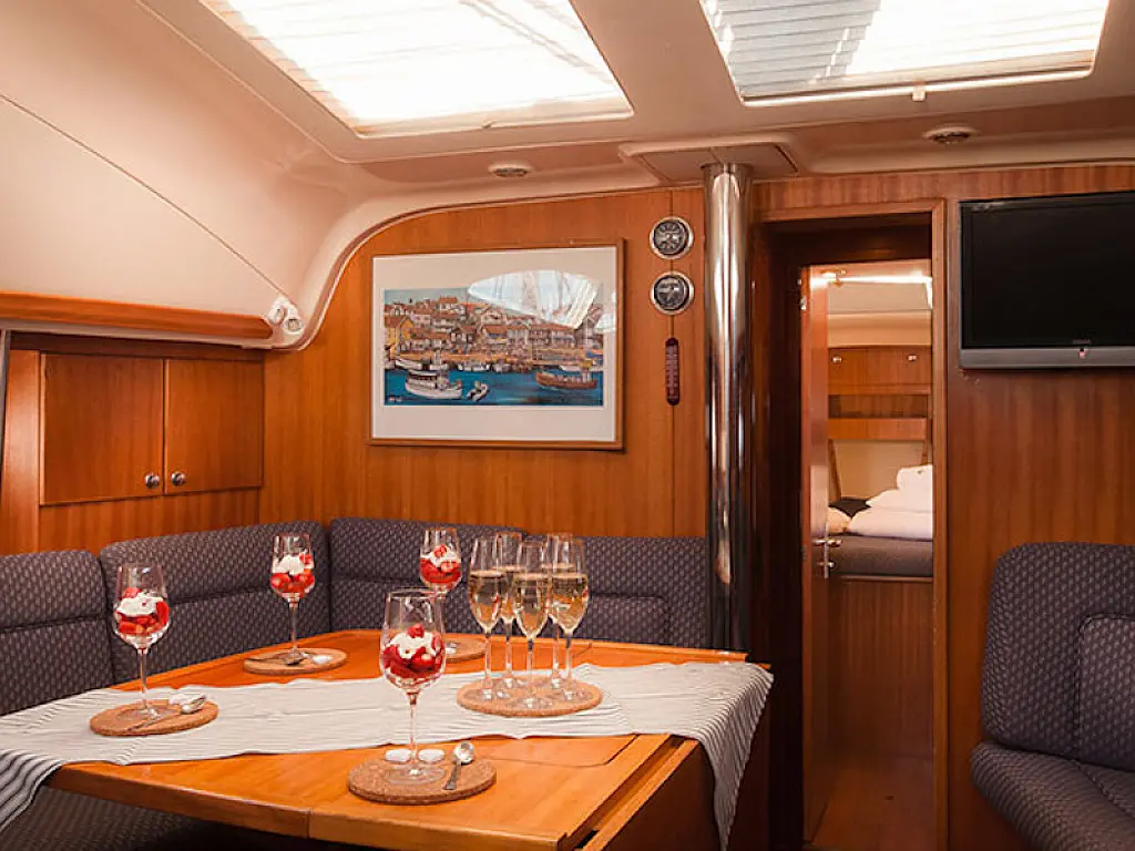 Bimini, Heating, Refrigerator, Sprayhood, Dinghy, Holding tank, Teak Cockpit, Cockpit speakers